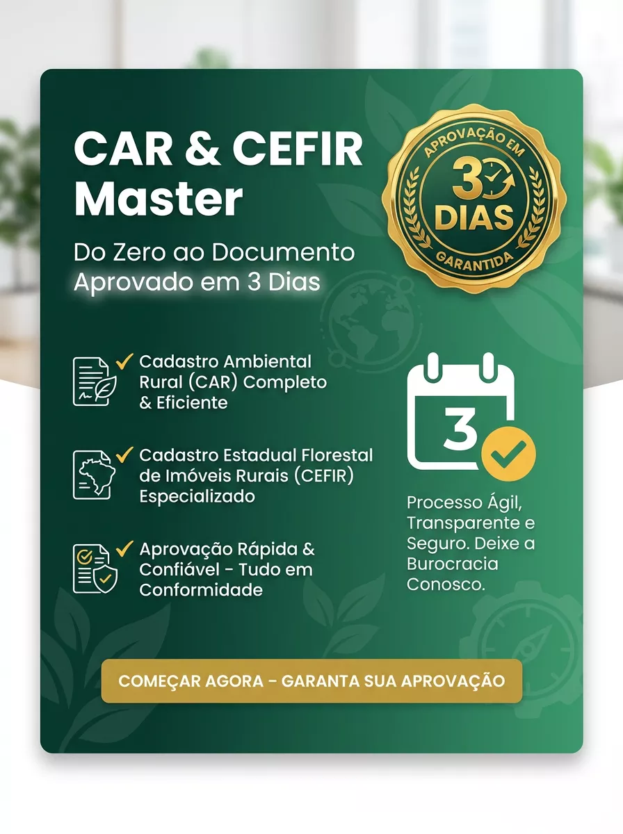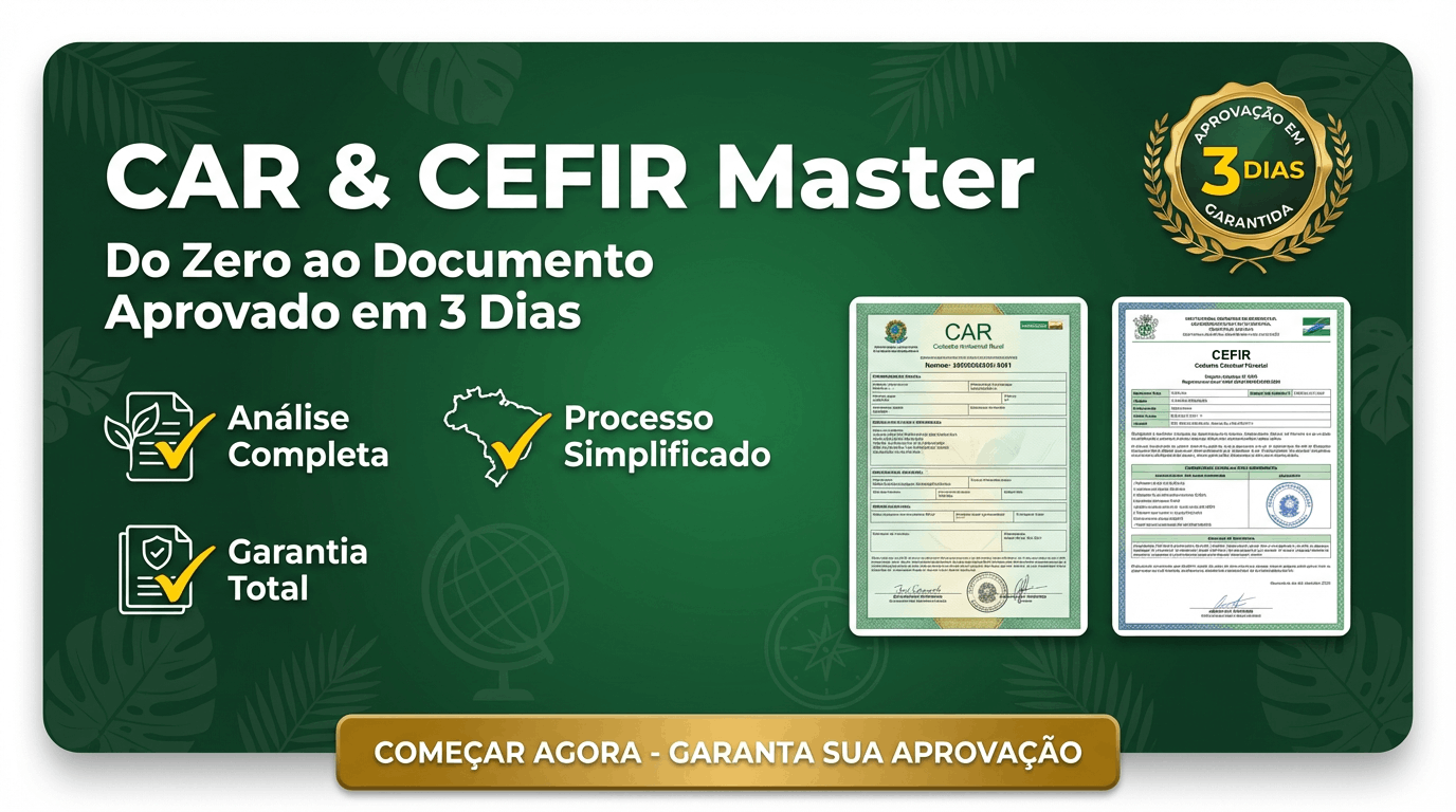 Com o CAR & CEFIR MASTER, você aprende exatamente o que precisa para emitir documentos completos, sem erros e aprovados de forma rápida.